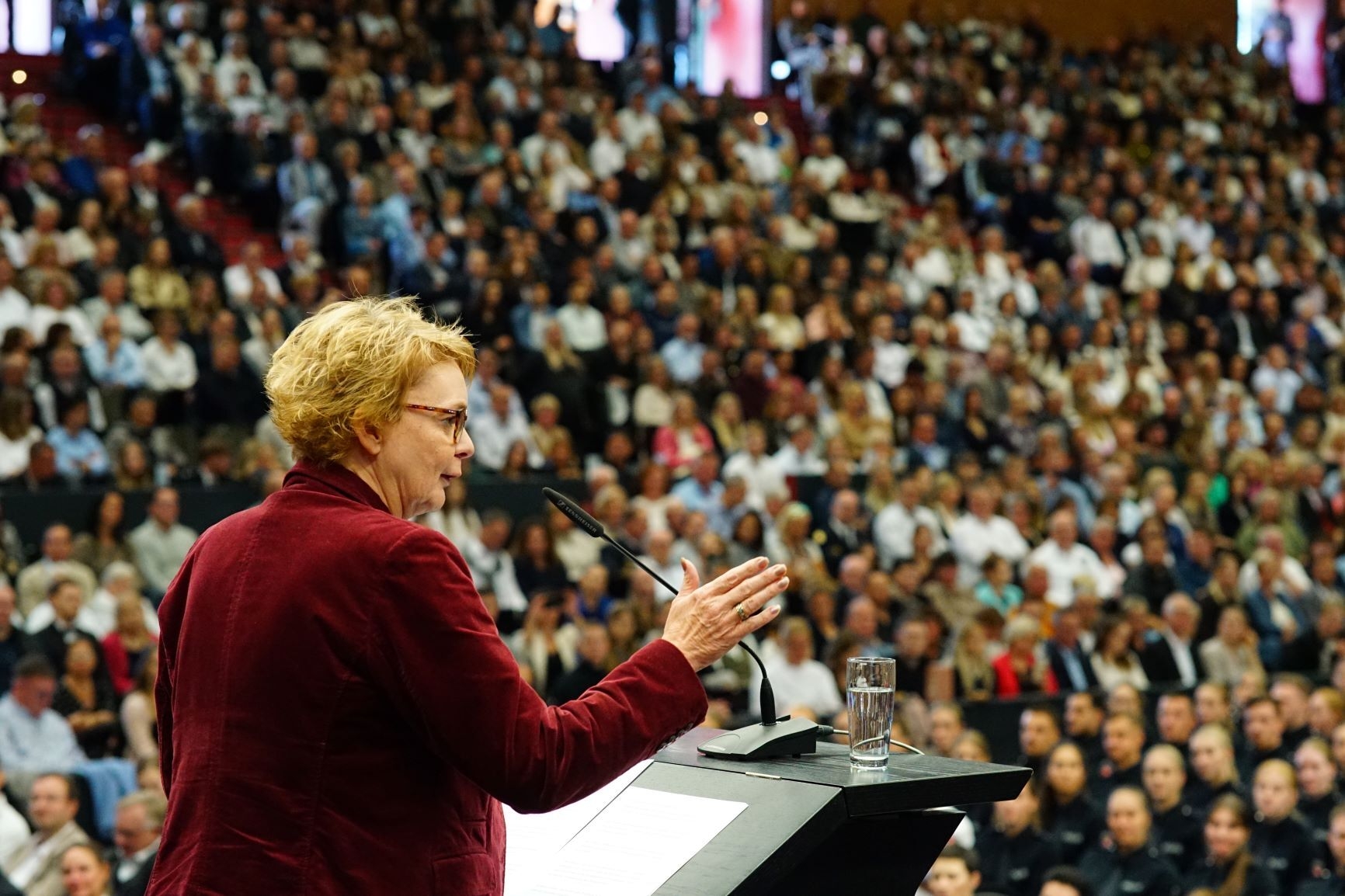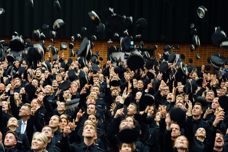 „In diesen Zeiten ist es ganz besonders wichtig, dass Menschen Verantwortung für die Sicherheit unserer Gesellschaft übernehmen. Die feierliche Ernennung zeigt, dass rund 770 junge Menschen bereit sind, genau diese Verantwortung zu übernehmen – für die Sicherheit in unserem Land und für eine Polizei, der die Menschen vertrauen können. Unsere neuen Polizeikommissarinnen und Polizeikommissare treten ihren Dienst in einer unruhigen Zeit an. Menschen zweifeln am Staat und an der Demokratie. Dem müssen wir uns entgegenstellen und unsere Werte und Regeln, die wir uns als Gesellschaft gegeben haben, verteidigen. Das ist die Aufgabe der Polizei. Dafür ist es unerlässlich, dass unsere Polizei bestens qualifiziert ist und fest auf dem Fundament unserer Verfassung steht. Ich wünsche den frisch gebackenen Polizeikommissarinnen und Polizeikommissare viel Erfolg in der alltäglichen Arbeit,“ betont Daniela Behrens, Niedersächsische Ministerin für Inneres, Sport und Digitalisierung.