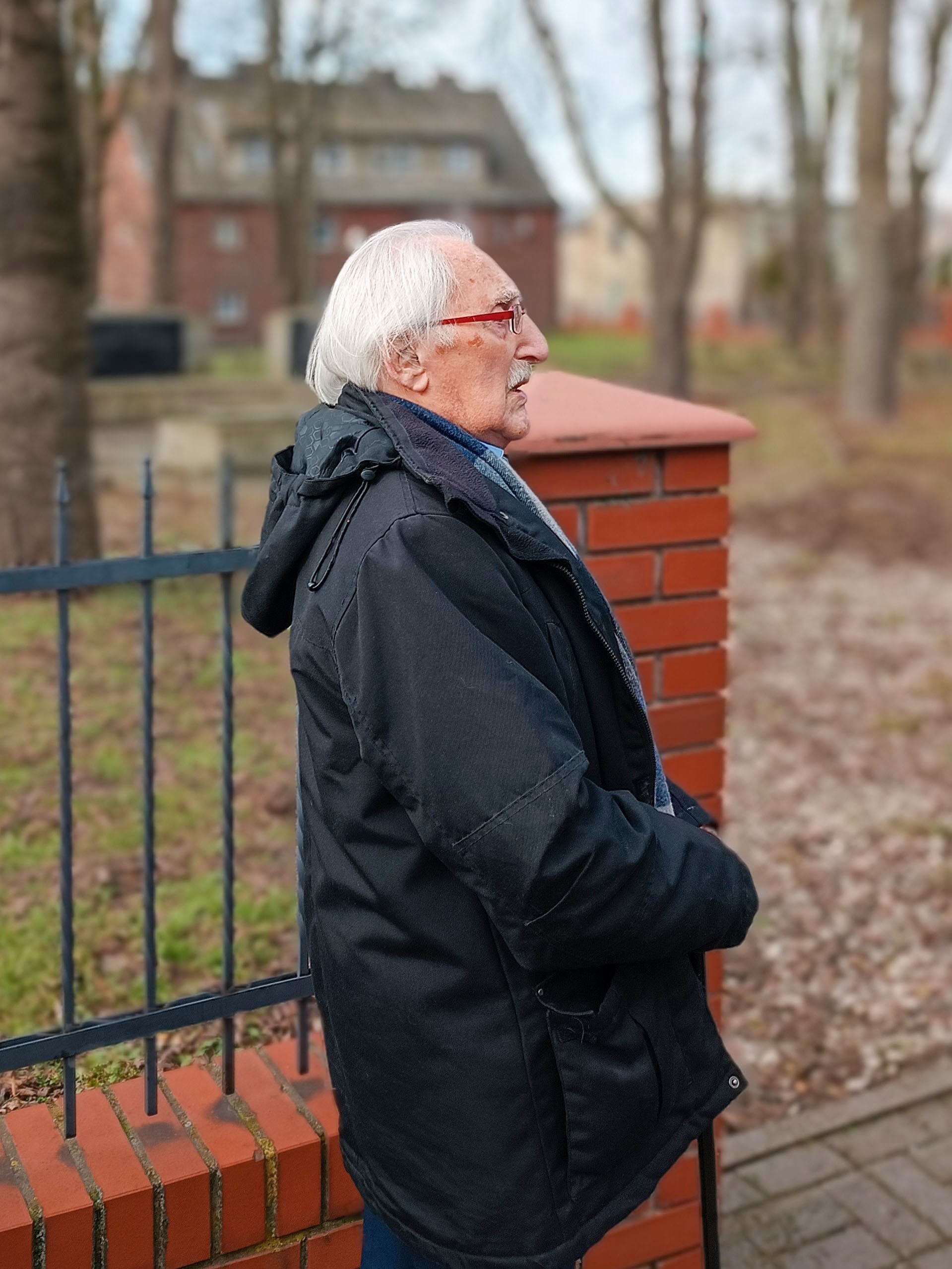 Ein besonderes, intensives und einprägsames Erlebnis war die Begegnung mit dem lebensfrohen 98-jährigen Zeitzeugen Dr. Leon Weintraub, Träger des Bundesverdienstkreuzes am Bande, der als Jugendlicher im Ghetto Lodz lebte und 1944 mit seiner Familie in das Konzentrationslager Auschwitz-Birkenau deportiert wurde. Weintraub, extra mit seinem Sohn aus Schweden angereist, um die Gruppe an den Ereignisorten zu begleiten, bezeichnet sich selbst als „Sieger“ und nicht als „Opfer“. Eindringlich und detailliert schilderte er, wie der Überfall der deutschen Wehrmacht auf Polen sein noch junges Leben völlig veränderte, wie er und seine Familie im Ghetto unter widrigsten Umständen zu überleben versuchten und am Ende ins Konzentrationslager Auschwitz-Birkenau deportiert wurden. Ein Ort, den seine Mutter nicht überlebte.