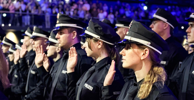 In einer feierlichen Zeremonie haben heute 675 Polizeikommissaranwärterinnen und -anwärter aus zwei Studienjahrgängen der Polizeiakademie Niedersachsen ihren Diensteid abgelegt. Mit dem Eid auf das Grundgesetz der Bundesrepublik Deutschland und die Niedersächsische Verfassung verpflichteten sie sich zu Recht, Freiheit und Demokratie – und damit zum Schutz der Grundpfeiler unseres gesellschaftlichen Zusammenlebens.
