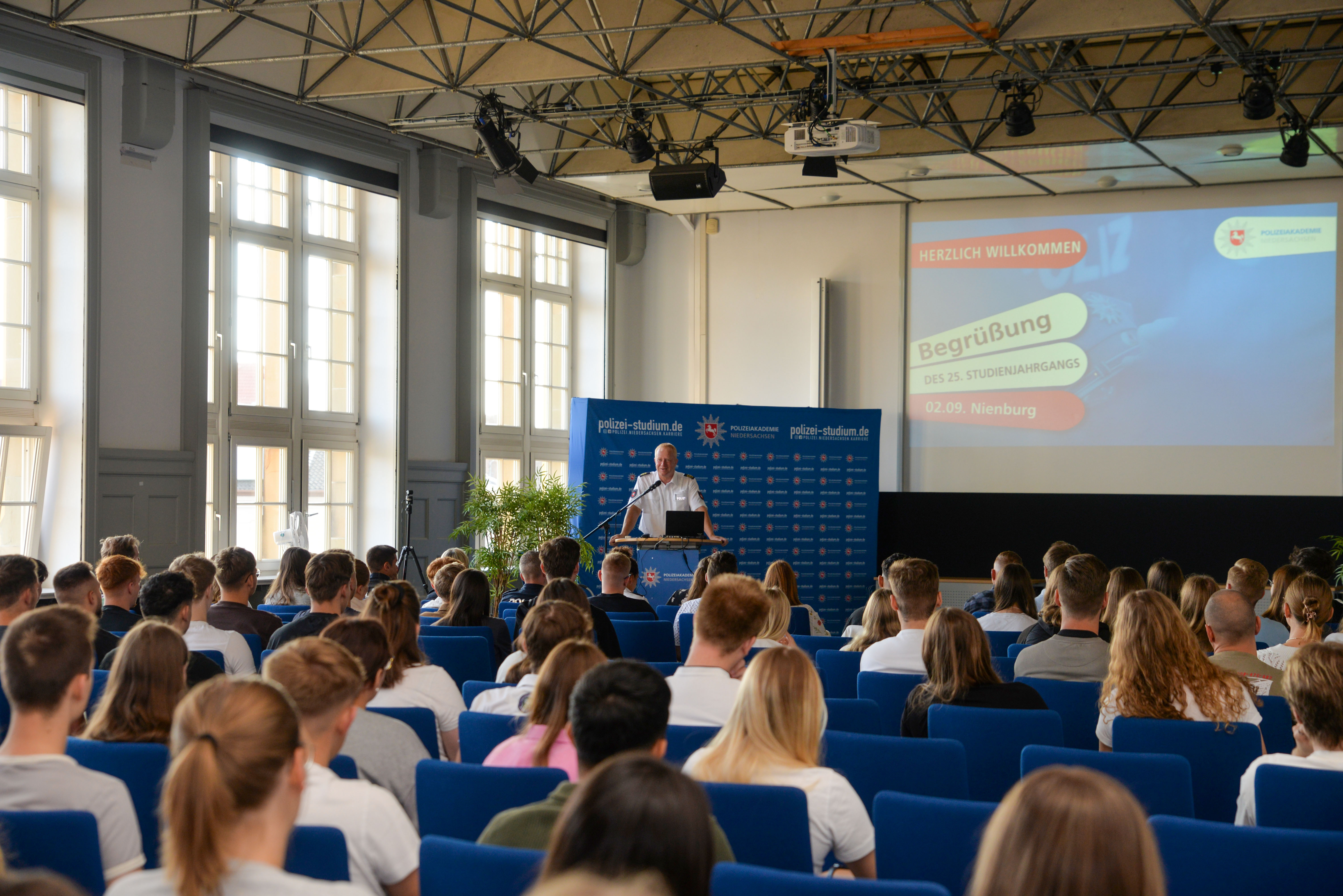 „Ich freue mich, in so viele junge und motivierte Gesichter zu schauen, die sagen: Ich will zur Polizei Niedersachsen, ich will mich aktiv für unsere freiheitliche Demokratie und die Sicherheit der Menschen in unserem Land einsetzen“, sagte Direktor Carsten Rose in seiner Begrüßung.