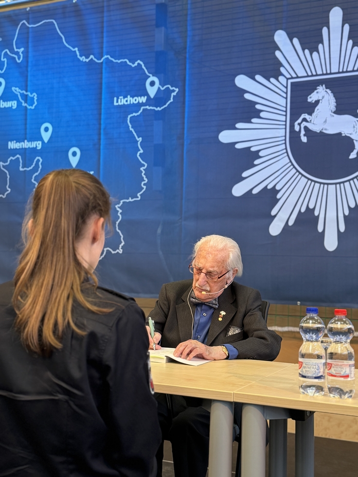 Bis heute stehen beide in Kontakt und die Wiedersehensfreude war groß bei der Veranstaltung in der Polizeiakademie Niedersachsen - ebenso groß wie die Begegnung mit niedersächsischen Polizeistudierenden, die Leon Weintraub anlässlich zweier Bildungsreisen in den Jahren 2024 und 2025 in Lodz, Dobra und Chelmno begleitete.