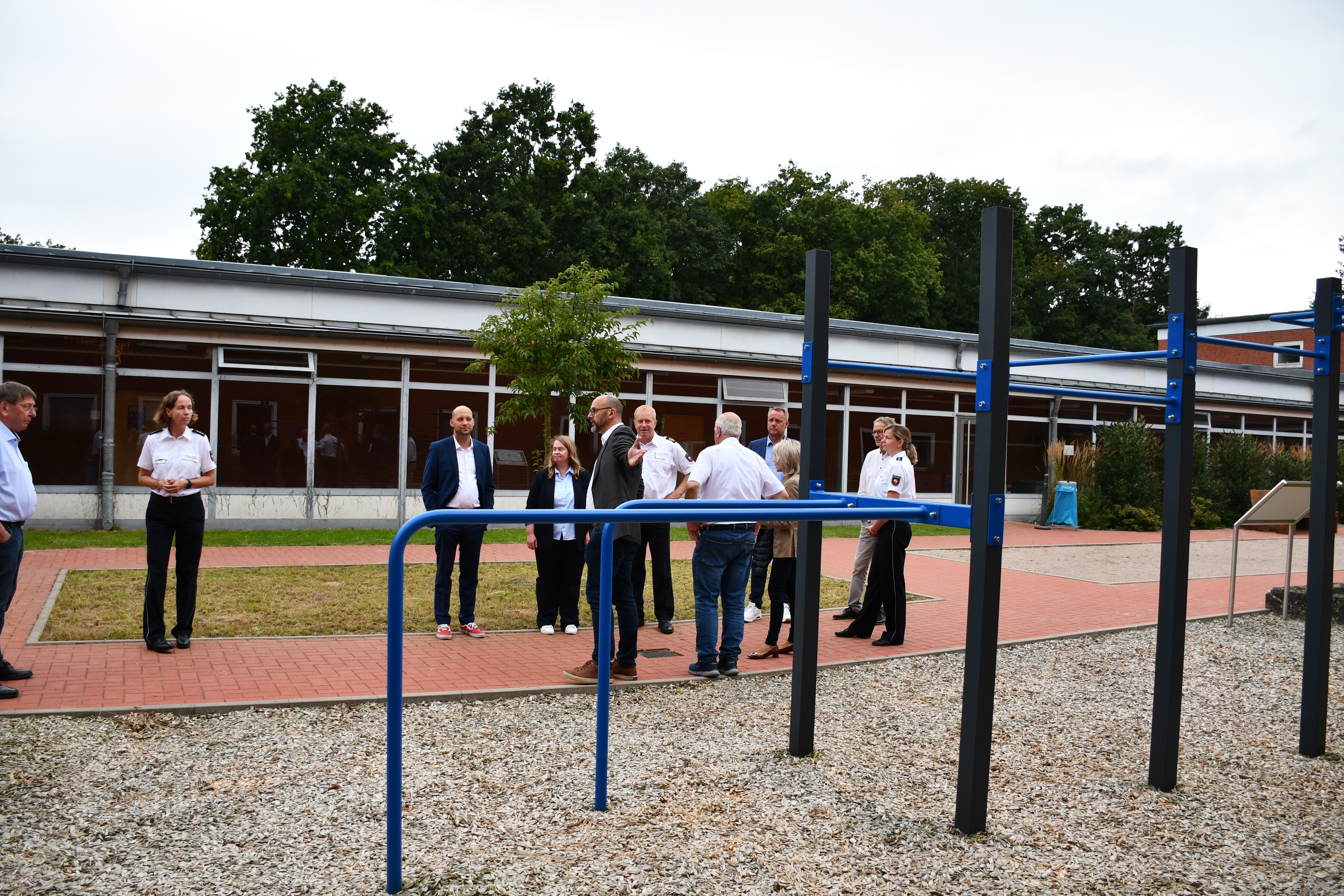 Der Direktor der Polizeiakademie Niedersachsen (PA NI), Carsten Rose, begrüßte am 07.08.2024 die Mitglieder des Arbeitskreises für Inneres und Sport der SPD Fraktion des Niedersächsischen Landtags am Studienort Oldenburg der PA NI. Nachdem die vorherigen Besuche der Abgeordneten in den letzten Jahren an den Studienorten in Nienburg und in Hann. Münden stattfanden, war die Neugier groß, wie sich der Standort in Oldenburg darstellt. Neben Herrn Rose nahm u.a. auch die Studienortverantwortliche, Frau Anke Arkenau, die Besuchenden in Empfang und lud nach ihren begrüßenden Worten zu einem Rundgang über das Gelände ein, um den Gästen einen Überblick über die Liegenschaft zu verschaffen.