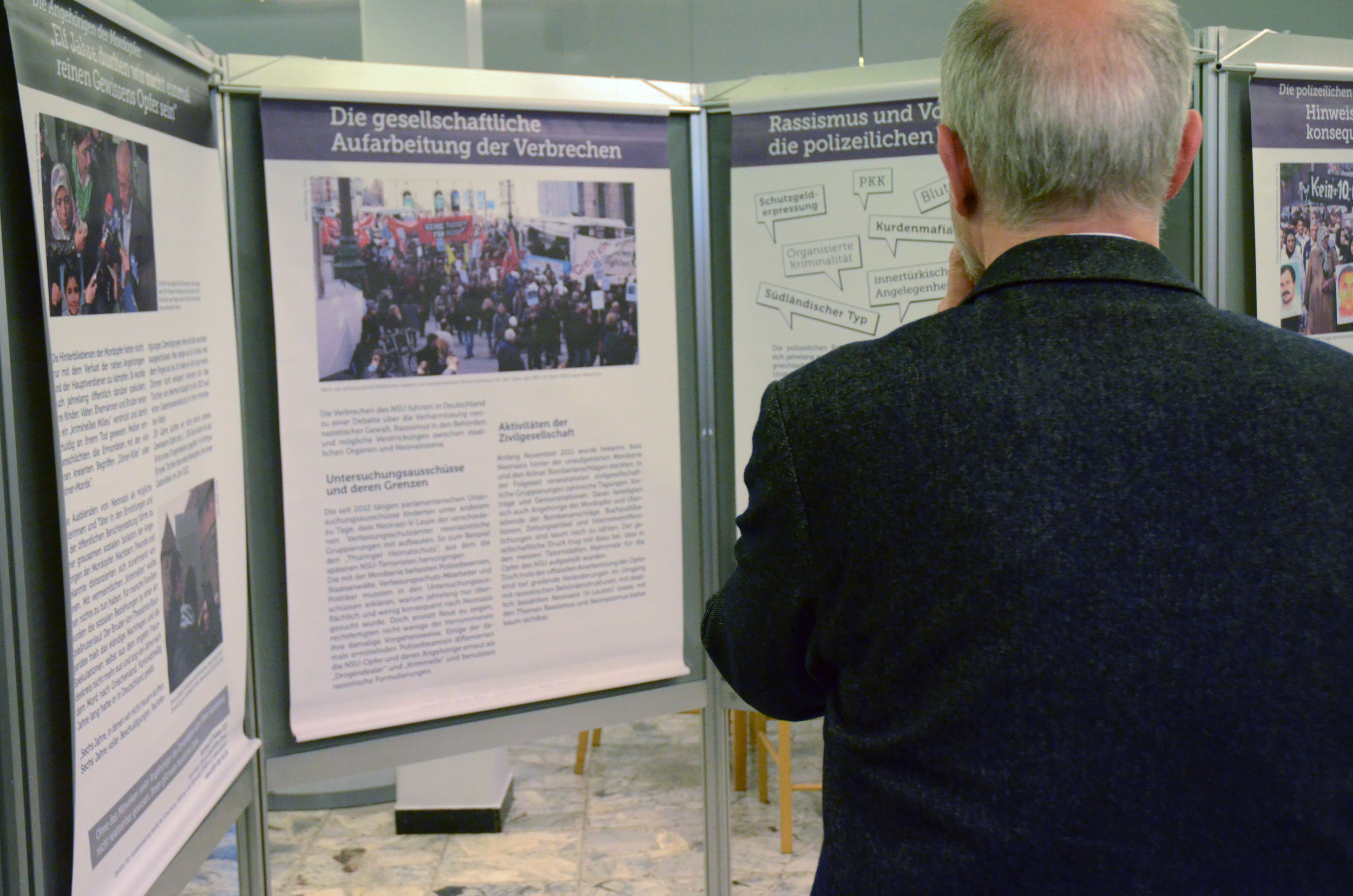 Der erste Teil der Exposition zeigt die Biografien der Opfer der Mordserie, ergänzt durch Aussagen von Angehörigen der Verstorbenen. Weitere Tafeln beschäftigen sich mit den Bombenanschlägen in Köln sowie den Banküberfällen, bei denen unschuldige Menschen teilweise lebensbedrohlich verletzt wurden.