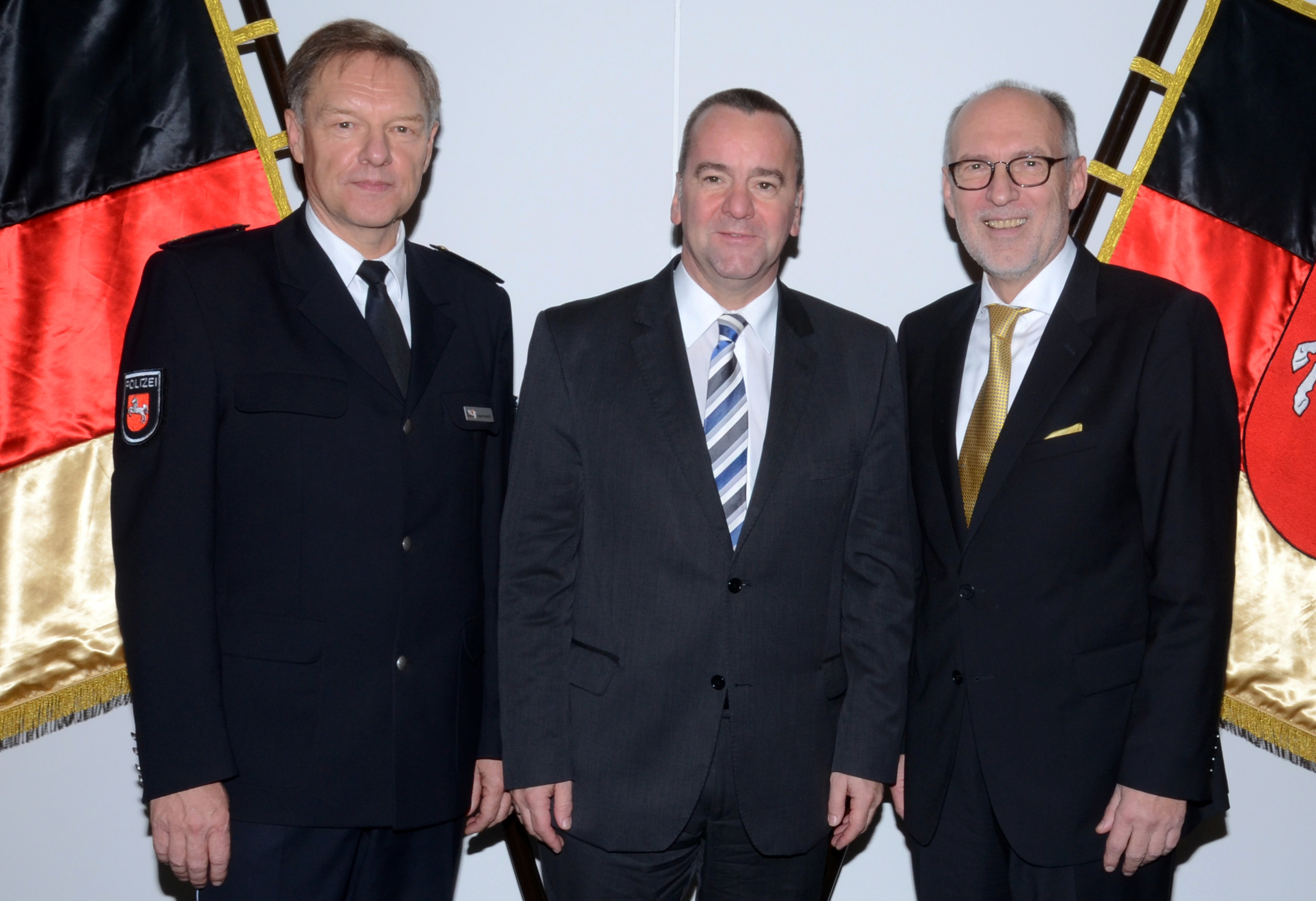 Zielstrebig, kompetent, besonnen – diese Worte fielen bei der Feier zur Verabschiedung des Direktors der Polizeiakademie Niedersachsen Johannes-Jürgen Kaul sowie zur Amtseinführung des künftigen Direktors Dieter Buskohl immer wieder in Bezug auf den scheidenden Leiter. Rund 200 geladene Gäste nahmen am 14. November 2014 in der Aula der Polizeiakademie Niedersachsen in Nienburg/Weser an dem Festakt teil. Darunter zahlreiche Abgeordnete des Landtags, Vertreter des Innenministeriums, Polizeipräsidenten und dienstliche Wegbegleiter.