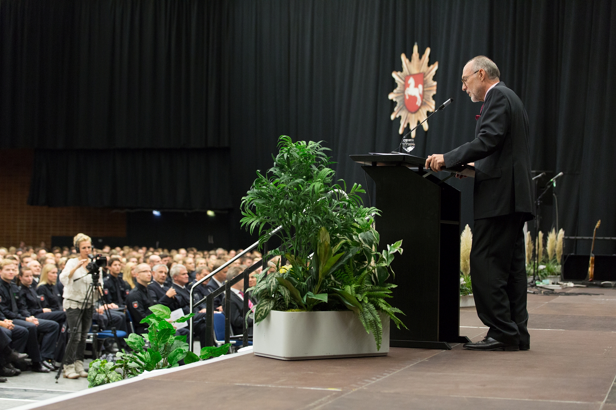 Der Bürger erwarte eine kompetent ausgebildete, bürgernahe und moderne Polizei, die sozialadäquat agiere, so Direktor Johannes-Jürgen Kaul. Vor über 2000 Gästen zog der Chef der Polizeiakademie Niedersachsen ein positives Resümee der vergangenen Jahre: „Mit Ihrem Studium sind Sie gut vorbereitet auf die anspruchsvollen Aufgaben im Polizeidienst. Sie sind in der Lage, die vielfältigen Einsatzsituationen, die auf Sie zukommen, rechtssicher, handlungssicher und entscheidungssicher zu bewältigen.“