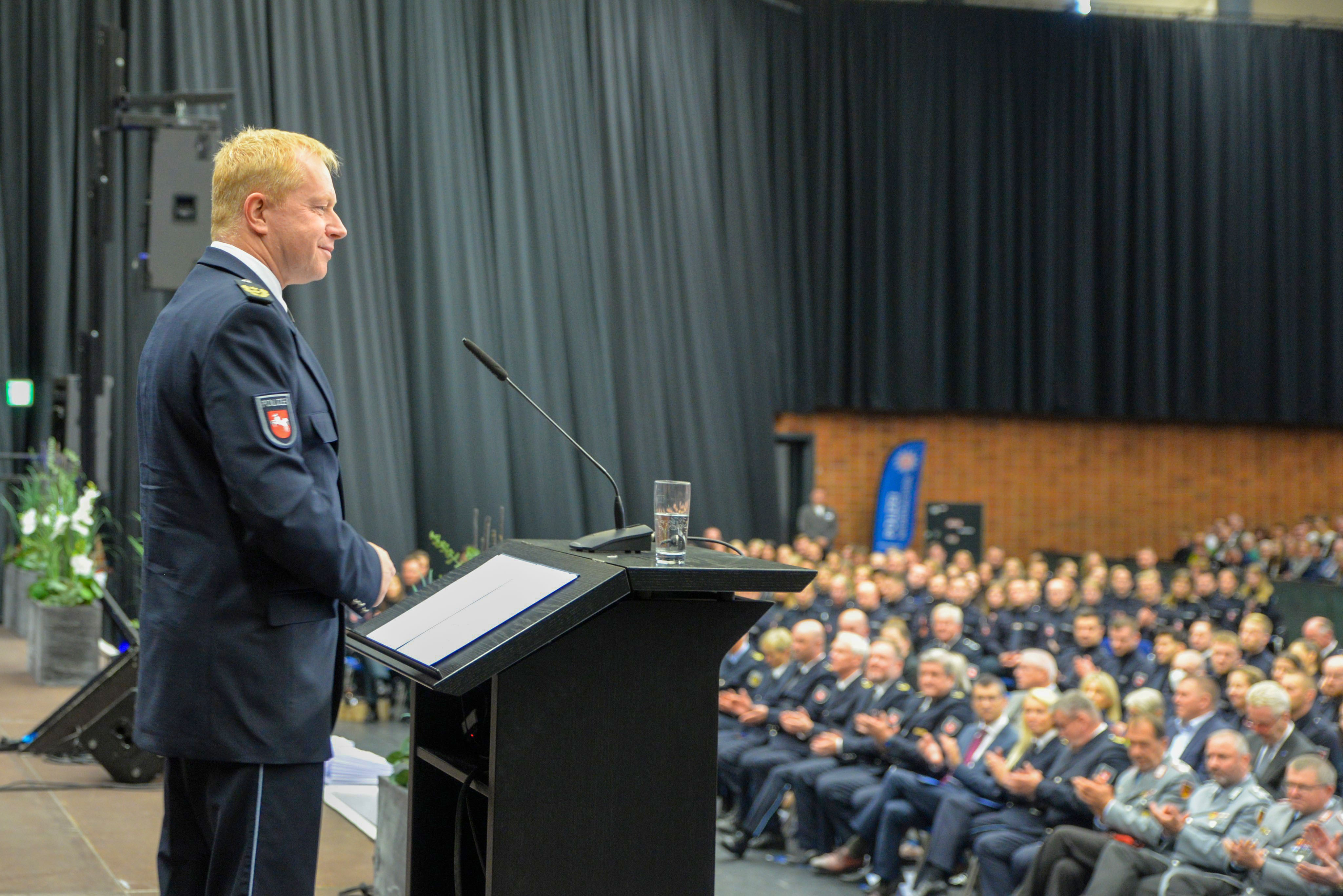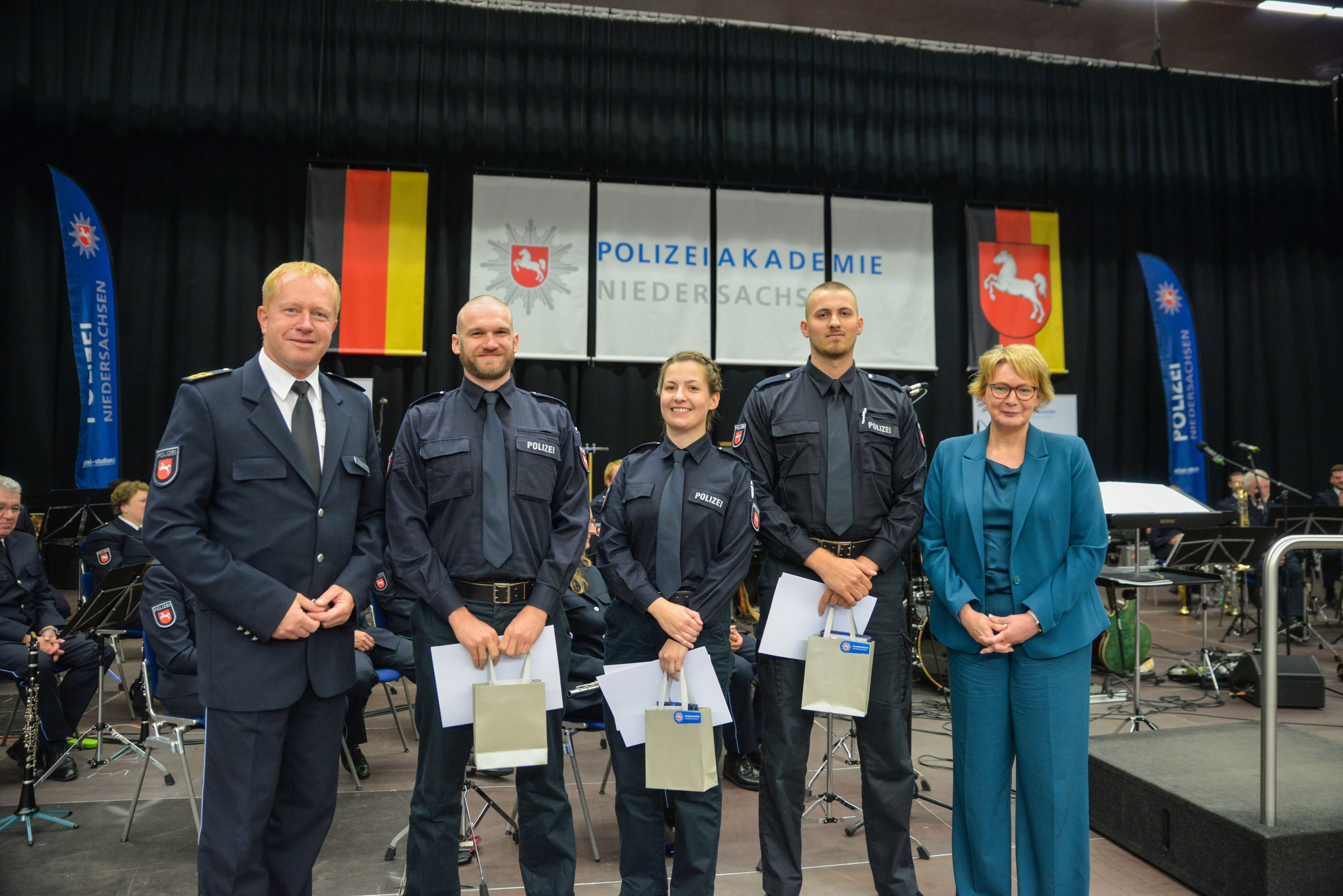 Die Absolventinnen und Absolventen wurden für ihre harte Arbeit und ihr Engagement während des dreijährigen Studiums geehrt. Verdeutlicht wurde, dass der Polizeidienst Teamarbeit erfordert und jedes Mitglied der Polizei eine wichtige Rolle für den Schutz und die Sicherheit der Bürgerinnen und Bürger spielt. „Gemeinsam sind wir stark. Die Herausforderungen, die vor uns liegen, können wir nur im Team bewältigen. Unsere neuen Polizeikommissarinnen und Polizeikommissare sind hervorragend vorbereitet, um in ihren neuen Rollen einen positiven Einfluss auf unsere Gesellschaft auszuüben“, betonte Carsten Rose, Direktor der Polizeiakademie Niedersachsen in seiner Rede.