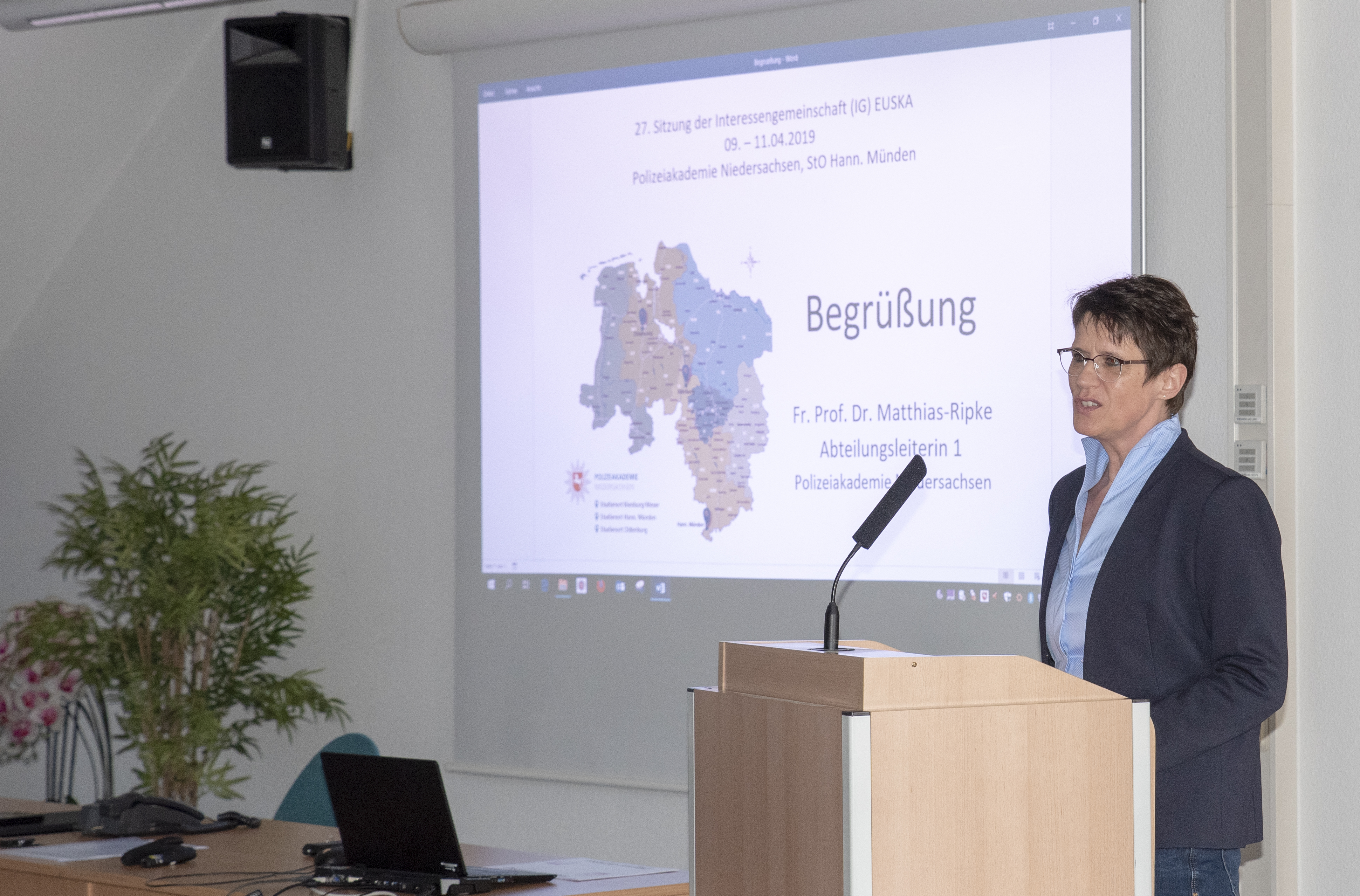 Begrüßt wurden die Teilnehmerinnen und Teilnehmer am zweiten Veranstaltungstag von Dr. Heike Matthias-Ripke, Professorin an der Polizeiakademie Niedersachsen und Leiterin der Abteilung 1 und damit zuständig für Studium und Lehre. Dr. Matthias-Ripke stellte in ihrer Begrüßung hervor: „Ein länderübergreifendes Auswertesystem ist mit Blick auf die Verkehrssicherheit von außerordentlicher Bedeutung. Nur aufgrund einer vollumfänglichen Sammlung von Unfalldaten ist es möglich, Maßnahmen zur Steigerung der Verkehrssicherheit zu erarbeiten.“