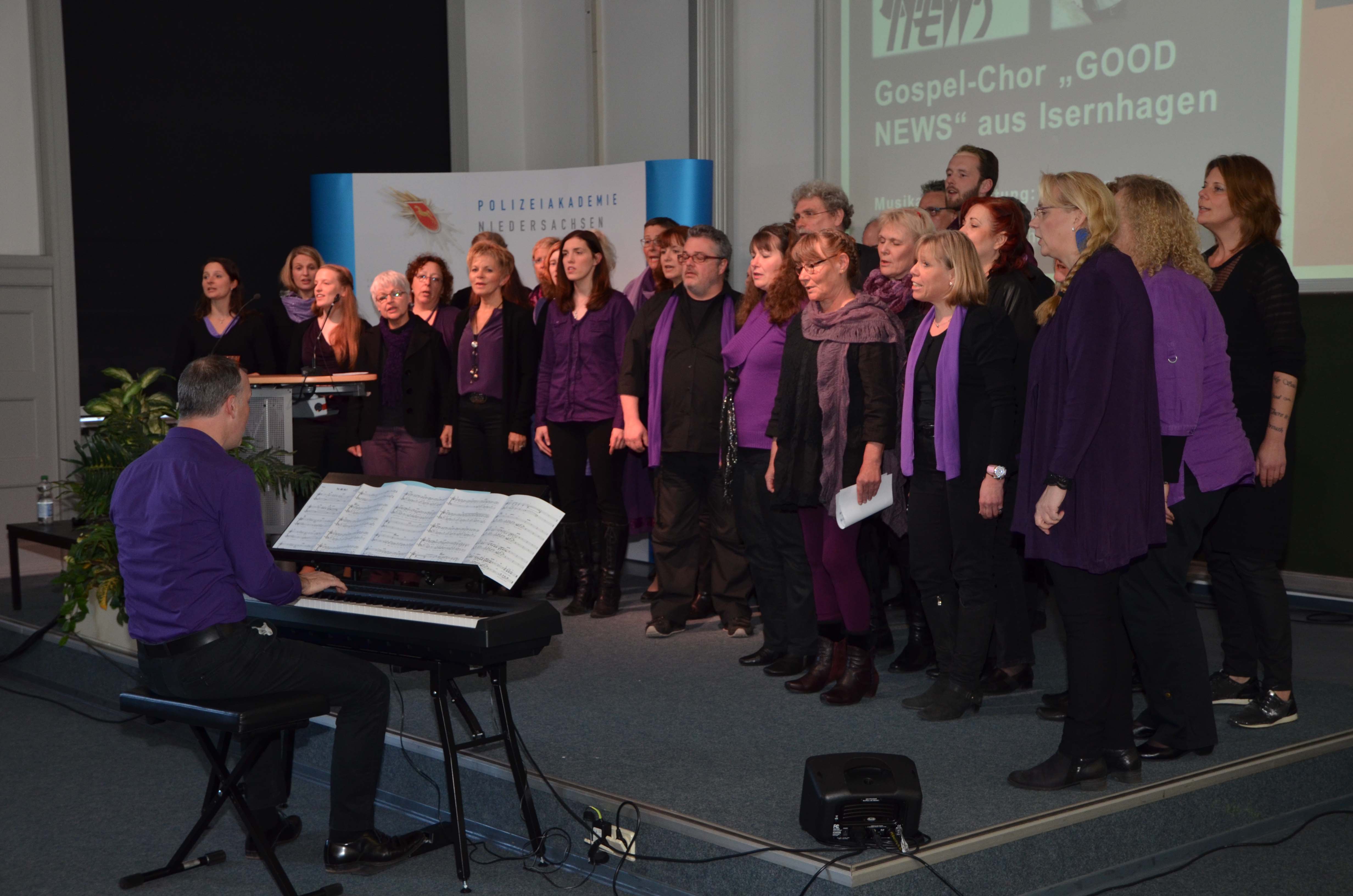 Stimmgewaltig begleitet wurde die Veranstaltung durch den Gospel-Chor „GOOD NEWS“ aus Isernhagen unter der Leitung von Björn Vüllgraf vom Polizeiorchester Niedersachsen.